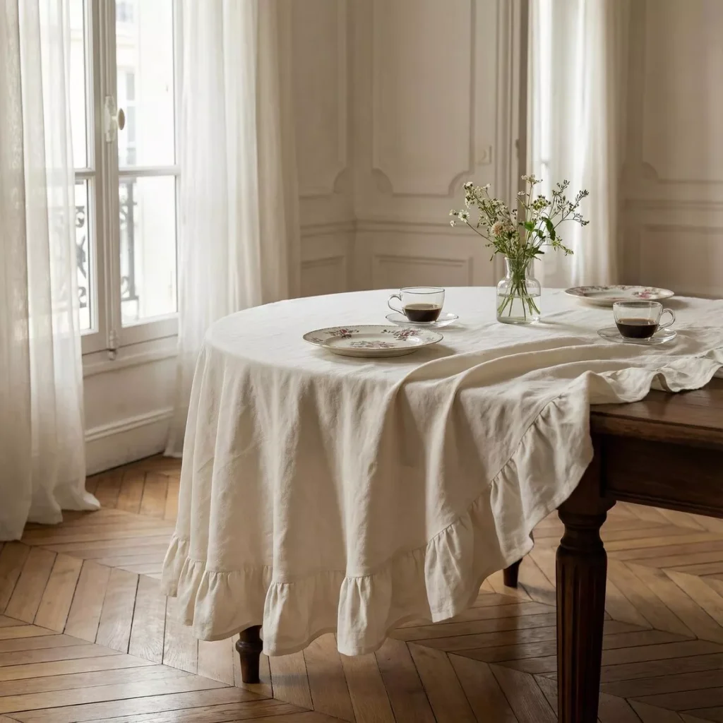 Today, table decoration goes beyond “practical covering”—in 2026, consumers focus more on tablecloths’ natural materials, scene adaptability, and whether they can balance aesthetic expression with eco-concepts. You may be looking for a tablecloth that fits different occasions, enhances dining table style, and aligns with a sustainable lifestyle. This article will break down the core advantages of linen and explain why this customized ruffled linen tablecloth is a top dining table choice in 2026.