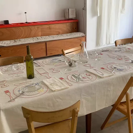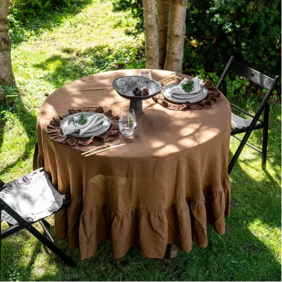 Wash in cold water with a mild detergent. Tumble dry on high heat after each wash; the longer the drying time, the softer and stronger the fabric will become. You can also hang the tablecloth in a well-ventilated area to dry, away from direct sunlight to prevent fading or warping.