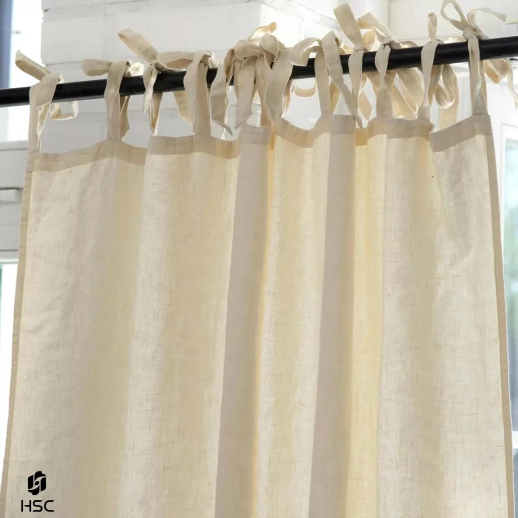 Romantic & Vintage (Country Villa / Homestay) HSC Handmade Tab Top Stone-Washed Linen Blackout Curtains Handmade tabs + 165 GSM stone-washed texture + natural white/earthy tones Brings vintage calm and soft natural linen feel—ideal for rustic decor