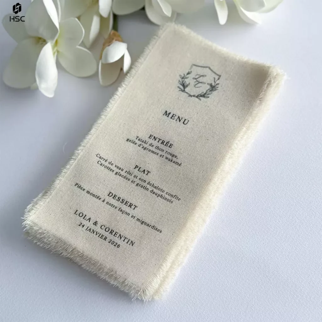 By 2026, wedding guests will prioritize tactile luxury at the venue over visual excess. This article walks you through 5 key linen sign trends that balance high-end aesthetics with the practical durability needed for professional event planning, while fitting weddings, birthday parties, quinceaneras, and other occasions. HSC is a leading custom manufacturer with 20 years of expertise, operating a 3,200 sqm production base in Shandong, China, serving over 3,000 global clients with a 99% order completion rate. All our products are OEKO-TEX® Standard 100 certified—every linen sign and menu undergoes testing for over 100 harmful substances, meeting global safety standards, making them a reliable choice for luxury weddings and event decor. Whether you need tailored OEM/ODM solutions or fast shipping for large-scale events, HSC’s mature supply chain is your trusted partner in crafting exclusive ritual moments. Beyond aesthetics, HSC solves the core challenge for event planners: how to balance high-end custom signage with an efficient global supply chain.