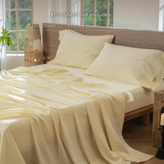 Linen: Linen fabric is lightweight and breathable. It may feel slightly rough at first, but it softens over time. This durable fabric is suitable for all seasons. Cotton: Cotton fabric is simple, soft, and crisp. It can be washed multiple times, maintaining its comfort for years, making it suitable for use in all seasons.